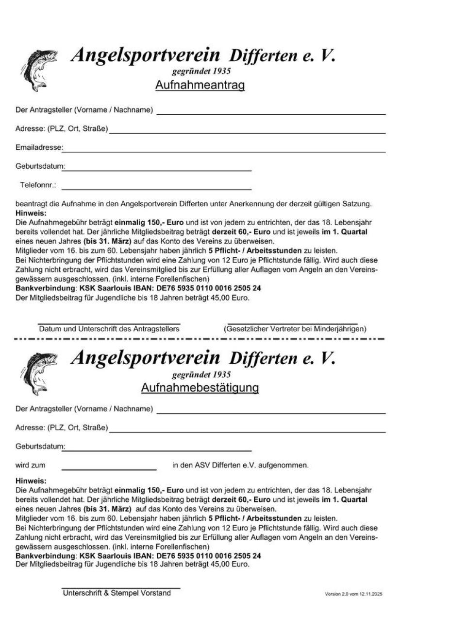 Das Anmeldeformular ist in unserer Fischerhütte oder hier als Download verfügbar.