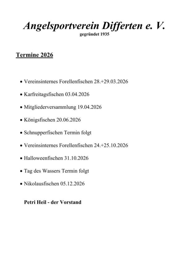 Der ASV wünscht Euch Petri Heil bei den anstehenden Terminen